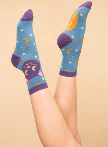 Dreaming Fox On The Moon Ankle Socks~Powder ~Navy