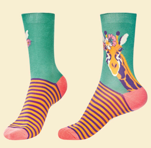 Fancy Giraffe Ankle Socks- Teal - Powder