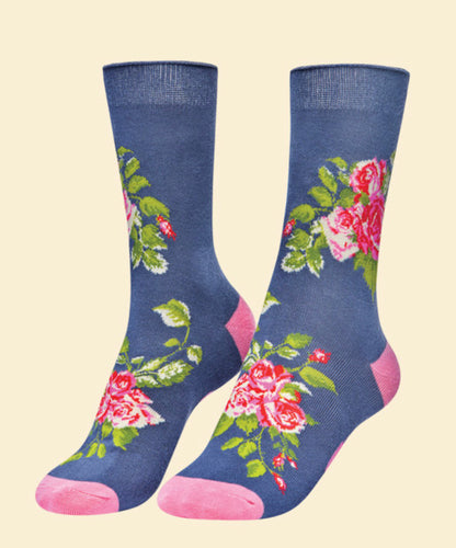Floral Vines Ankle Socks - Navy - Powder