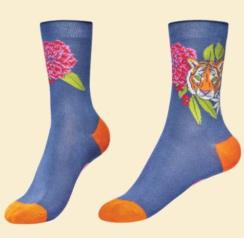 Floral Tiger Ankle Socks - Indigo - Powder