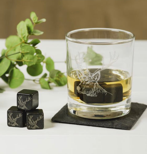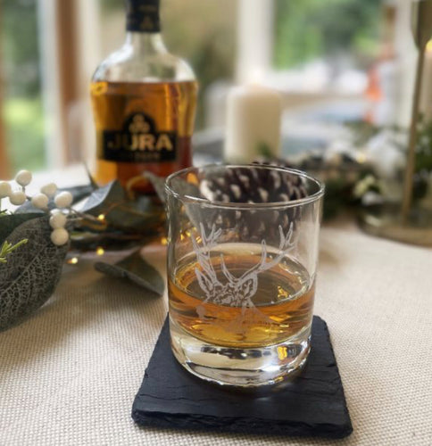 Stag Engraved Glass Tumbler with Slate Coaster Gift Set