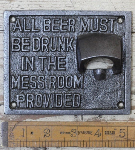 Cast Iron Wall Plaque, All Beer Must Be Drunk In The Mess Room Provided