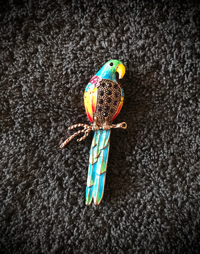 Colourful Jewelled Parrot Brooch
