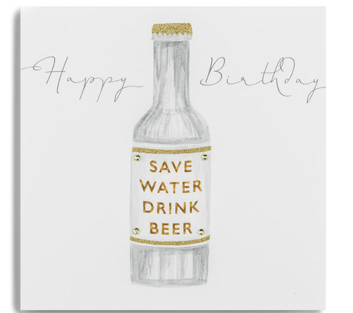 Save Water Drink Beer - Happy Birthday - Gold Leaf Greeting Card