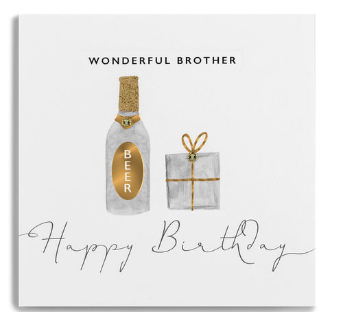 Wonderful Brother - Happy Birthday - Gold Leaf Greeting Card