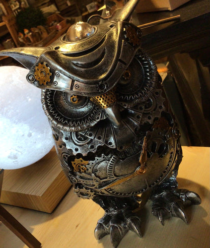 Silver Owl with hanging moon pendant
